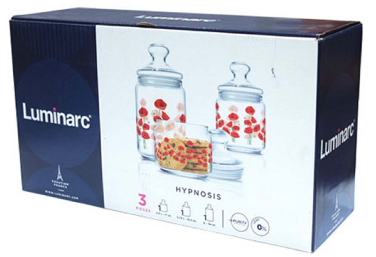 Набор из 3-х банок с крышками Luminarc Hypnosis, изготовленные из ударопрочного стекла. Устойчивость к повреждениям при ежедневном использовании. Выдерживает перепады температуры до 130°С, что позволяет использовать посуду в микроволновой печи.